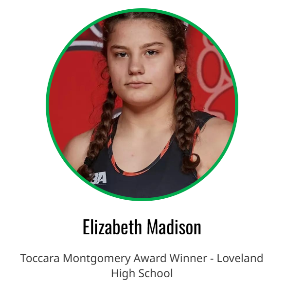 April 10: OHIO'S BEST WRESTLER! HUGE CONGRATULATIONS go out to Loveland's Elizabeth Madison for being named the Ohio State Wrestling Coaches Association's Tocarro Montgomery Award winner! The award goes to the state's top female wrestler, based on a vote from Ohio's wrestling coaches!